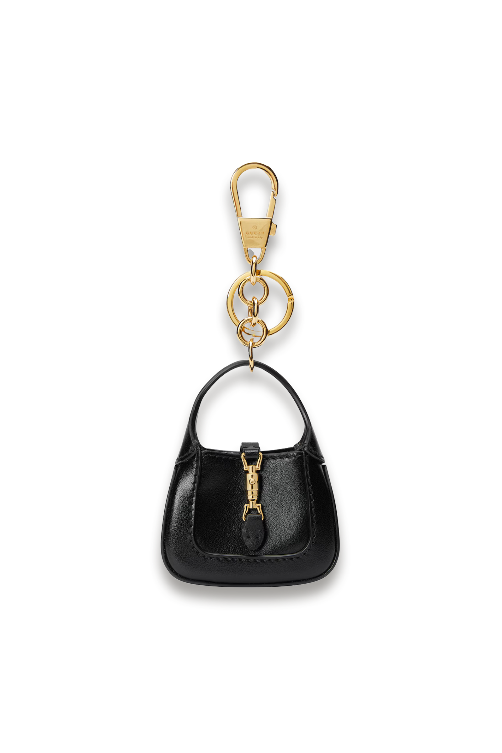 The Jackie 1961 Keychain captures the essence of Gucci's iconic heritage with refined craftsmanship. This compact accessory features the distinctive Jackie silhouette that defined a generation of luxury design, now reimagined as a practical yet sophisticated key holder. Crafted with meticulous attention to detail, it combines functionality with timeless elegance. Perfect for those who appreciate authentic Italian design and recognise the significance of Gucci's most celebrated styles. An understated statement piece that elevates everyday essentials.