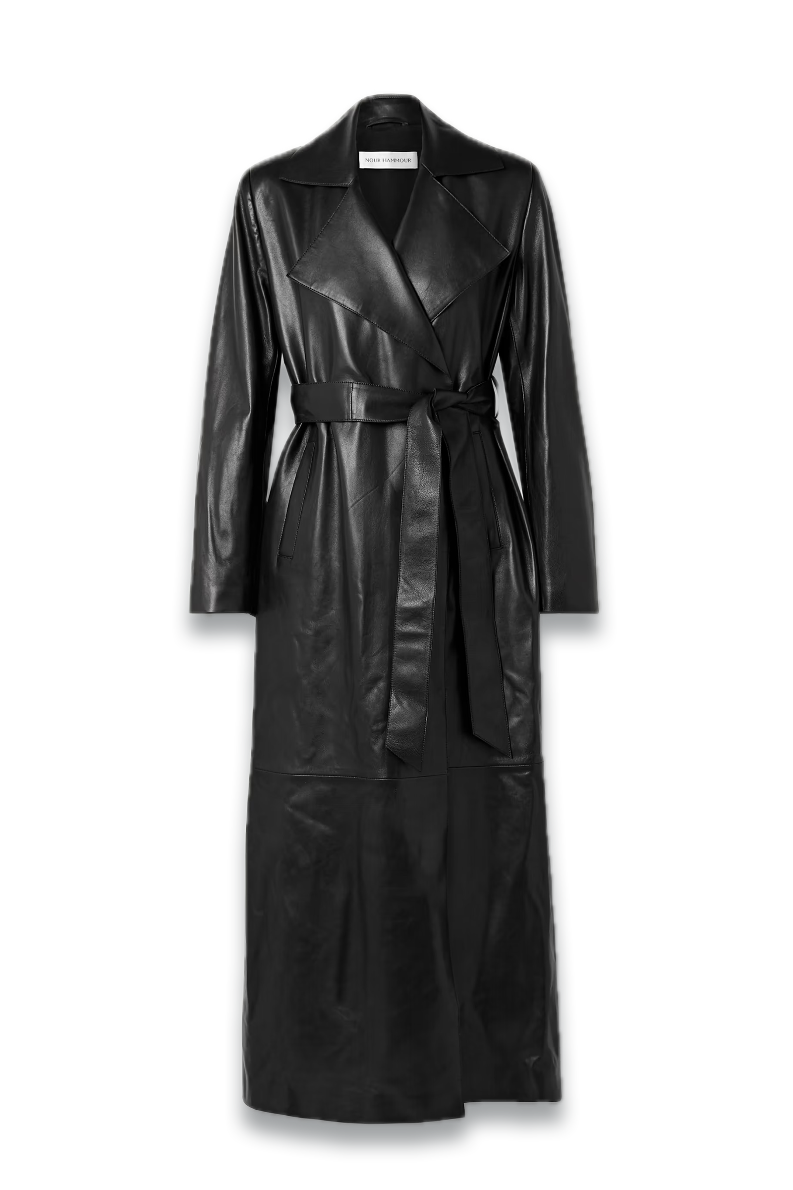 The Kasha Belted Leather Trench Coat by Nour Hammour merges timeless elegance with contemporary edge. Crafted from premium soft leather, its tailored fit enhances the silhouette while offering comfortable movement. The belted waist defines shape, adding versatility to its classic trench style. Ideal for transitional seasons, it elevates both casual and formal outfits effortlessly—pair with tailored trousers for work or jeans for weekend wear. Compared to traditional trench coats, the leather material provides a modern, bold alternative with durable warmth and distinct texture, making the Kasha a standout addition to any wardrobe.