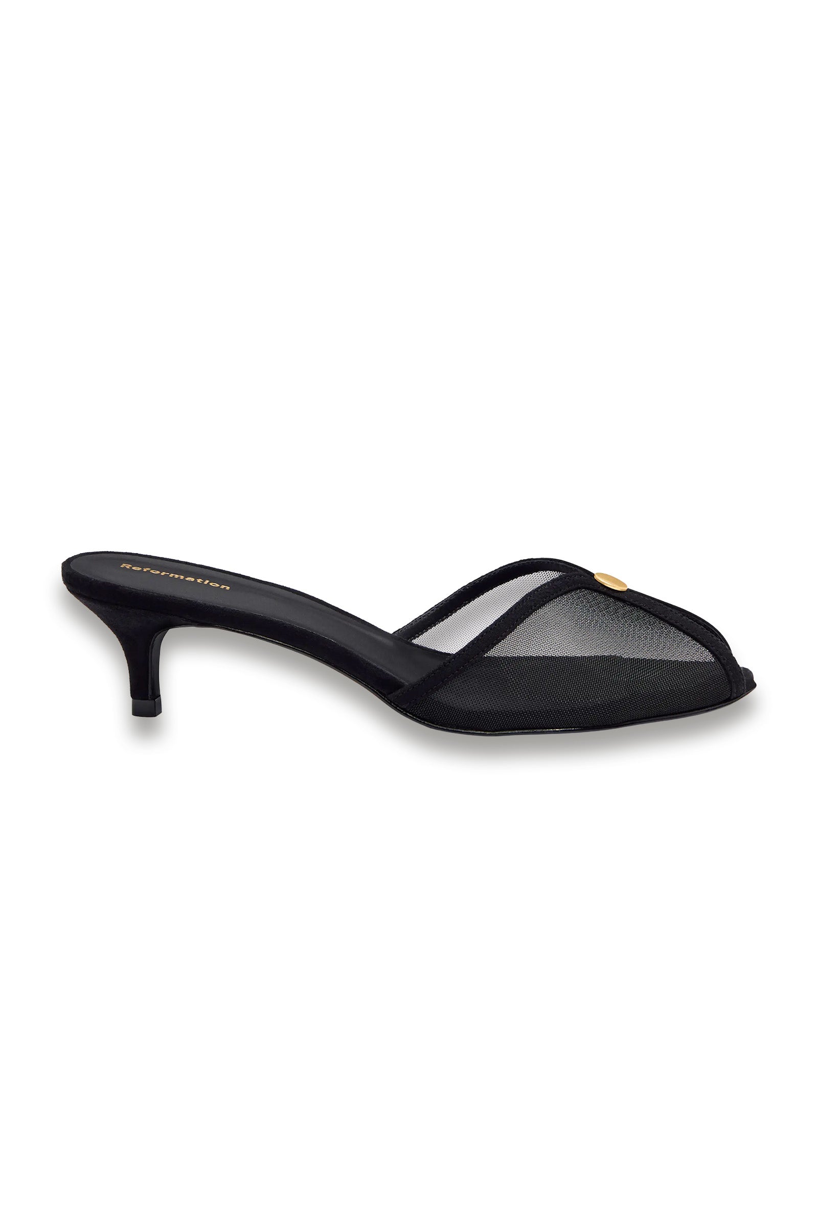 Reformation's Wisdom Peep Toe Mule combines understated elegance with contemporary design. This versatile style features a refined peep toe silhouette and slip-on mule construction for effortless wear. Crafted with Reformation's commitment to sustainable practices, the shoe transitions seamlessly from office to evening occasions. The streamlined profile and neutral palette make it an essential addition to any discerning wardrobe, offering both comfort and sophisticated style.