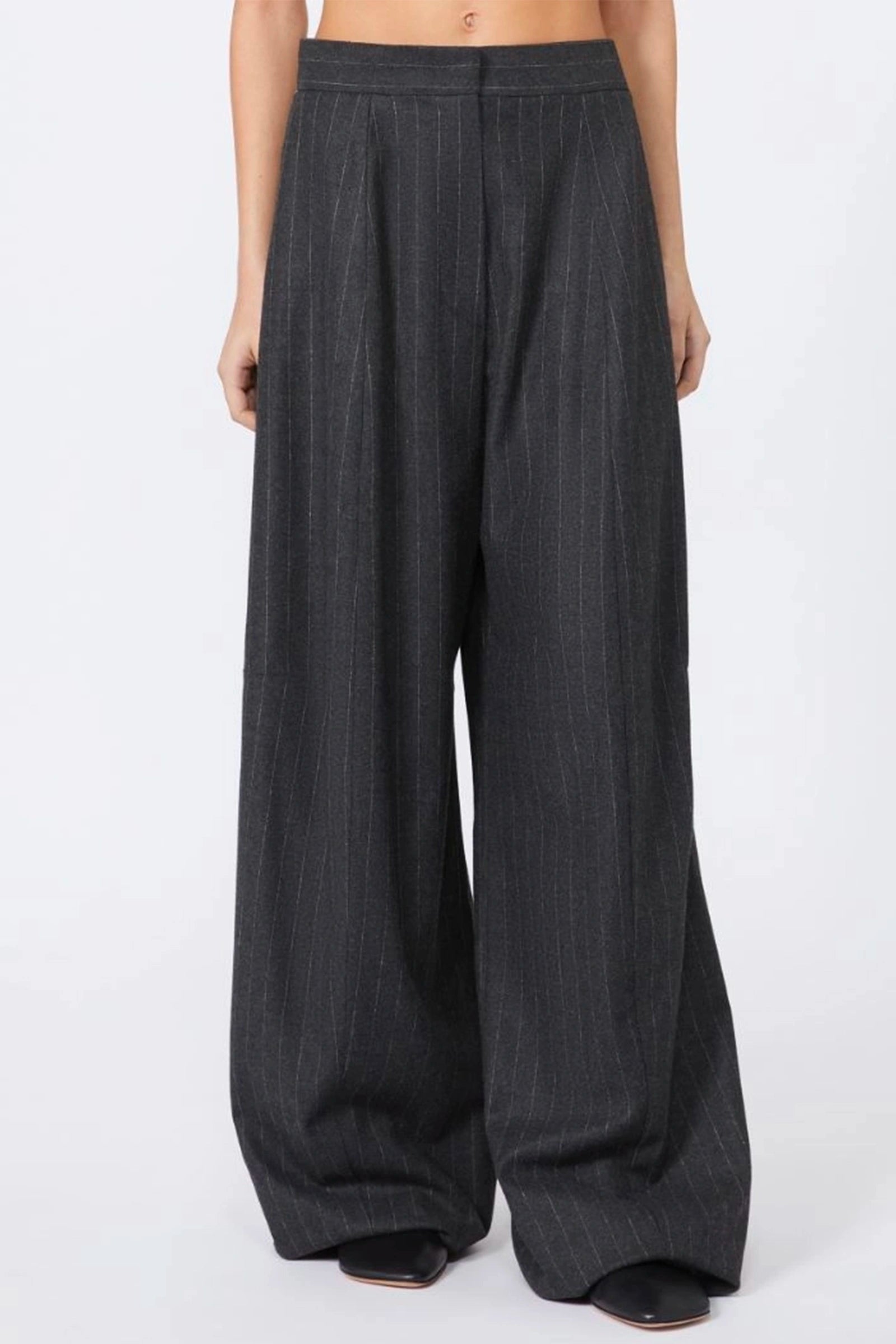 Wide, Wool and Viscose Trousers - Runway - Dark Grey