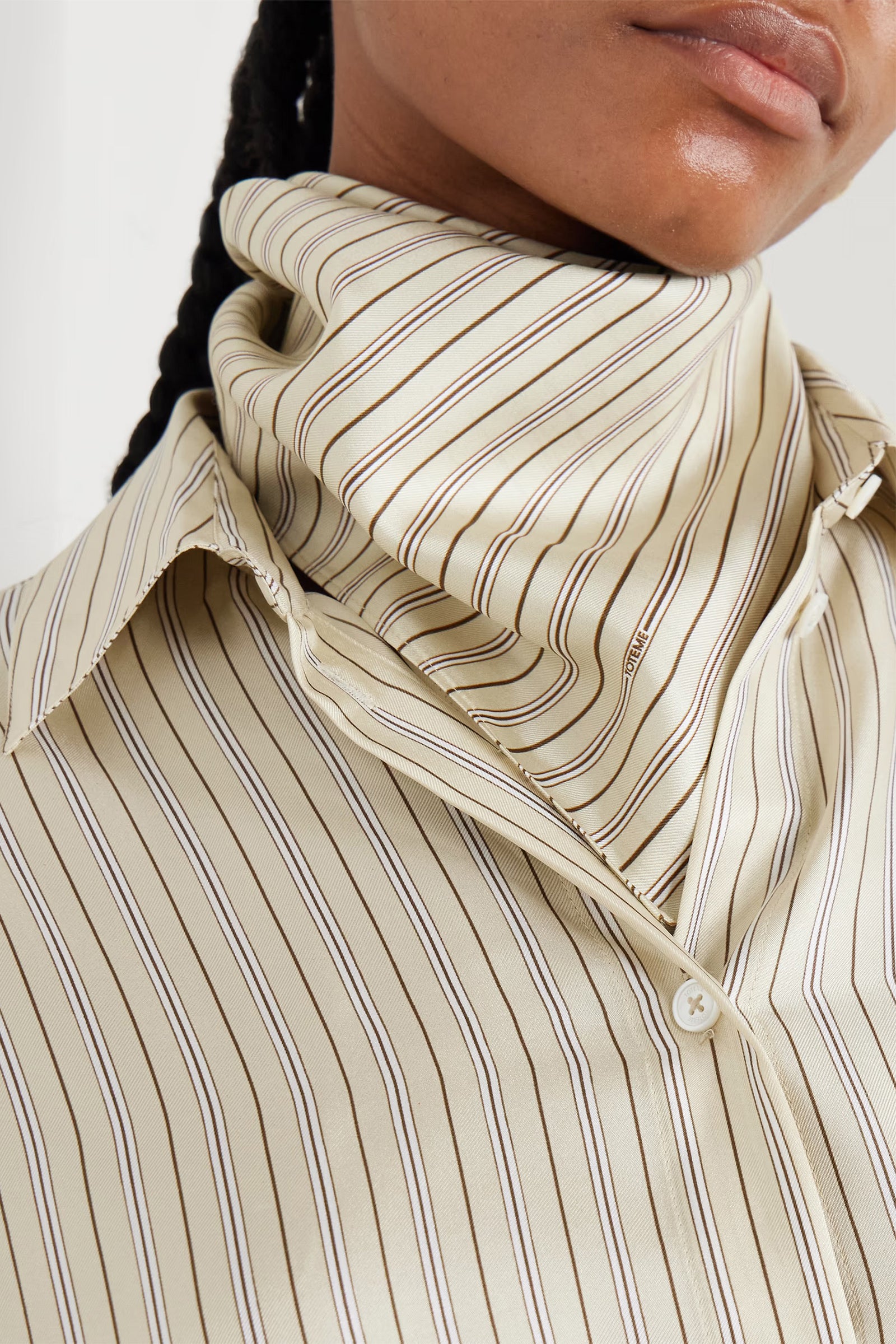 Elevate your everyday style with this timeless striped silk-twill scarf by Toteme. Crafted from luxurious silk-twill fabric, it drapes beautifully around the neck or shoulders, adding instant sophistication to any outfit. The signature striped pattern offers versatile styling options, whether worn as a classic neck accessory or creatively layered. Perfect for transitioning between seasons, this essential piece combines understated elegance with practical versatility. A wardrobe staple that works as hard as you do.