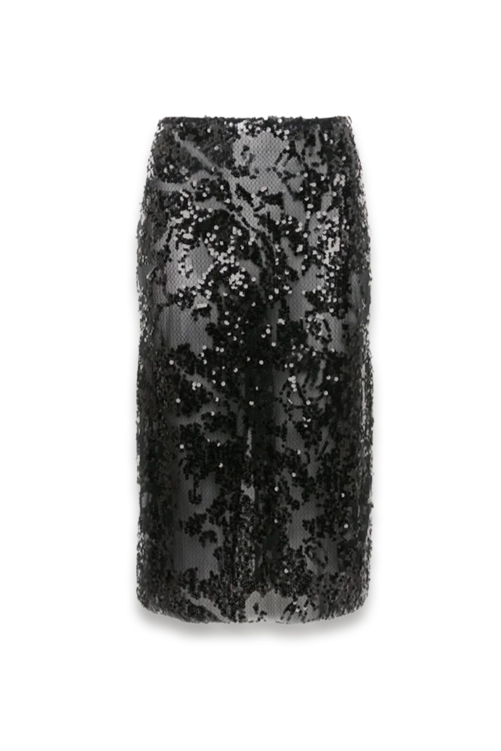Sheer Sequin Pencil Skirt in Black